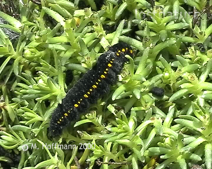 Raupe des Hochalpen-Apollos Parnassius phoebus, UF Parnassiinae, Nähe Stilfser Joch, Süd-Tirol, Italien, 2001