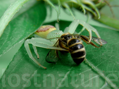 Krabbenspinne frisst Biene, Mt. Rani, Nepal, 2008