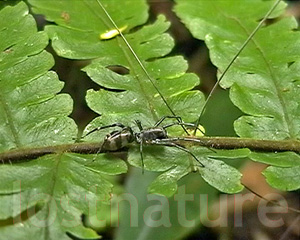 Stachelspinne Gasterocanthus spec.,Fam. Araneidae Radnetzspinnen, Wau, Papua-Neuguinea, 2005 Wasserbewohnende Raubspinne aus Neuguinea, Familie Pisauridae, 2000