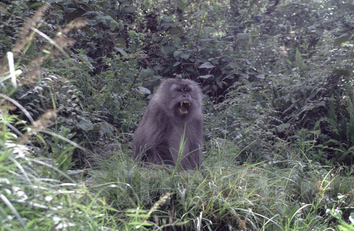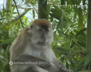 Männlicher Javaneraffe Macaca fasciularis am Gunung Rinjani, Lombok, Indonesien, 2002 Video Gruppe Javaneraffen Macaca fasciularis, bei Bukittinggi, Sumatra, Indonesien, 2003